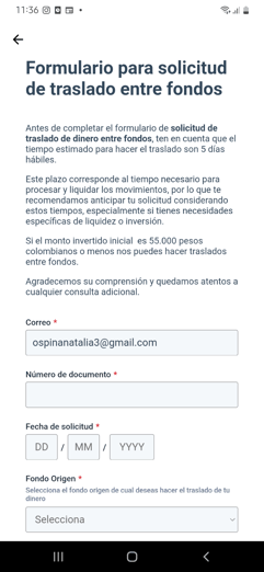 3. Se abrirá un formulario que debes diligenciar en su totalidad. Recuerda solicitar que se transfieran más de $55.000 COP.