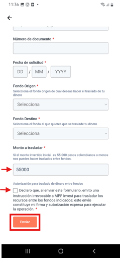 4. Después de haber completado toda la información, envía la solicitud. Tu traslado se procesará al siguiente día hábil y verás el nuevo saldo en aproximadamente 5 días hábiles.